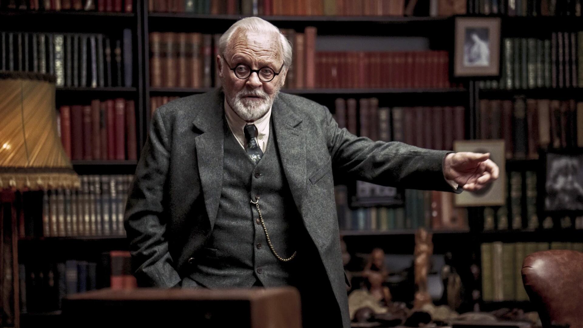 En la película, Hopkins interpreta a un Freud anciano y enfermo de cáncer, quien se prepara para recibir a Lewis en su casa, mientras las sirenas anuncian bombardeos nazis sobre la ciudad. La conversación es la clave de esta historia que imagina un debate entre el padre del psicoanálisis, un acérrimo ateo y hombre de ciencia, y el religioso Lewis.