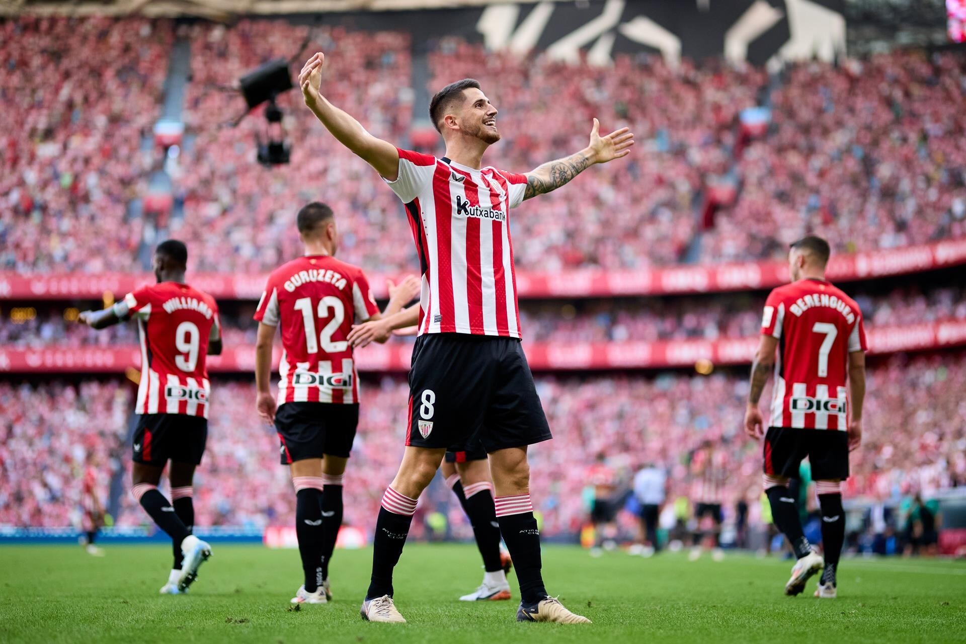 El Athletic Club y el Getafe CF firmaron tablas (1-1) este jueves en el primer partido de la nueva temporada 2024-2025 de LaLiga EA Sports tras un partido donde los "azulones" pese a estar cortos de efectivos supieron frenar a los locales hasta la salida final al campo de Nico Williams. El conjunto que entrena José Bordalás le planteó un choque muy incómodo al campeón de la Copa del Rey, que apenas pudo generar ocasiones, aunque supo aprovechar una acción individual y las paradas de Alex Padilla para ir por delante, y luego aceleró con la entrada de su ahora jugador franquicia, insuficiente ante la seguridad de David Soria. El "Geta" fue valiente en "La Catedral", donde Bordalás puso a un centrocampista, Chrisantus Uche, como "9". Este y Carles Pérez crearon muchos problemas a la zaga del equipo vizcaíno y cuando parecía que mejor estaban los visitantes llegó el 1-0. Oihan Sancet recibió con muchos metros por delante y enfiló hacia la portería para dibujar un preciso disparo ajustado imposible para la estirada de David Soria. El tanto no achicó al Getafe, que vio también como perdía a un jugador importante como el centrocampista uruguayo Mauro Arambarri, aunque ya no inquietó tanto, con un disparo de Carles Pérez como su mejor opción. El Athletic Club tampoco se volvió dominador, pero Iñaki Williams, en el largo añadido, rozó el 2-0 con un afilado disparo cruzado. Bordalás movió ficha en el segundo tiempo y metió a Peter Federico, a cambio de retirar, de forma un tanto inesperada, a Carles Pérez. El dominicano estuvo a punto de hacer el empate nada más reanudarse el choque, pero su disparo se topó con el palo. Más clara fue la que tuvo poco después Carles Aleña, sustituto de Arambarri, que se plantó solo ante Padilla, que sacó una pierna de genio para aplazar el empate. Pero este terminó llegando en un saque de esquina, bien cabeceado por Uche y que premió su buen partido. El Athletic Club trató de despertar pese a su mal partido en ataque y Ernesto Valverde no tardó en dar la oportunidad a un ovacionado Nico Williams. El extremo entró con más de 20 minutos por delante y su frescura hizo daño a un equipo ya algo más castigado en el físico. El internacional asumió los galones en busca del 2-1 y lo probó con un gran disparo, bien repelido por un entonado David Soria, atento poco después para enviar a corner una falta del menor de los hermanos que se había "envenenado" peligrosamente. Los locales fueron apretando hasta el final a un Getafe que no podía ya desplegarse, pero el portero "azulón" le sostuvo con una parada fina a otro disparo desde fuera del área de Yuri Berchiche.