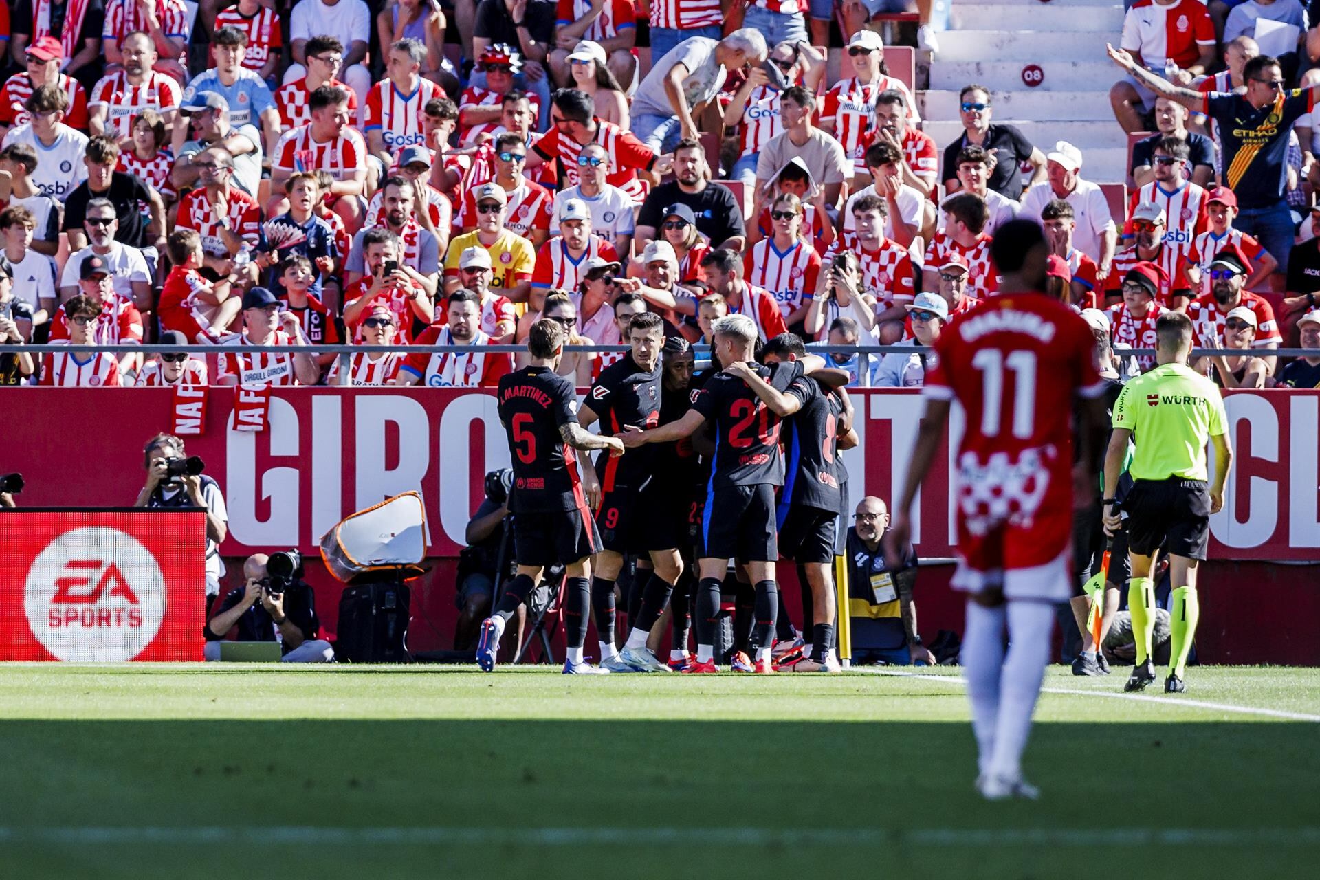 El FC Barcelona, bajo la dirección de Lamine Yamal, ha goleado este domingo al Girona en Montilivi (1-4) en la quinta jornada de LaLiga EA Sports, un resultado que refuerza sus grandes sensaciones y le permite asentarse en el liderato de la tabla y que interrumpe la buena marcha de los de Míchel en las últimas fechas. Dos goles de la joven estrella azulgrana en siete minutos iniciaron la exhibición de los de Hansi Flick en el recinto gerundense, y, tras el descanso, los tantos de Dani Olmo y Pedri sentenciaban el choque. Stuani, en el 80, maquilló el marcador, todo en un encuentro que terminó con la expulsión de Ferran Torres por un pisotón sobre Asprilla. De esta manera, el Barça mantiene el pleno en la competición doméstica y llegará con confianza a su estreno ante el Mónaco -que le goleó hace unas semanas en el Trofeu Joan Gamper- en la novedosa Liga de Campeones, donde el Girona debutará frente al Paris Saint-Germain en el Parque de los Príncipes. Sin sorpresas en el once, el mismo que goleó al Real Valladolid (7-0) justo antes del parón, el conjunto azulgrana necesitó apenas unos minutos para encontrar las buenas sensaciones en Montilivi, donde dominó a placer. En el 5, Lamine Yamal ya avisó con un zurdazo que atrapó Paulo Gazzaniga, y al cuarto de hora Robert Lewandowski se animó con un cabezazo que también acabó en las manos del portero argentino. Después de un par de ocasiones de Alejandro Balde, Lamine Yamal encontró finalmente premio a la insistencia culé al aprovechar un tremendo descuido de David López. Cuando el defensa trataba de salir con el balón jugado, el joven atacante español se lo robó y anotó el primero de la tarde con un remate alto (min.30). La estrella azulgrana no se quedó ahí y solo siete minutos después logró ampliar la renta de los de Hansi Flick. Tras una falta de Raphinha y el posterior despeje del cuadro local, la pelota quedó muerta en la frontal, donde apareció Lamine Yamal para ponerla dentro, ajustada al palo izquierdo (min.37). Justo a punto de llegarse al descanso, el colegiado Muñiz Ruiz pitó penalti por una mano de Iñigo Martínez, pero tras consultarlo con el VAR lo anuló, al entender que no era punible porque el esférico le llegó de espaldas tras un despeje de su compañero Balde. En medio de la pitada de Montilivi, los jugadores encararon el túnel de vestuarios. Nada más reanudarse el encuentro, Jules Koundé puso un balón largo a la espalda de la defensa y conectó con Dani Olmo, que se sacó un potente disparo con el que sorprendió al guardameta local para hacer el tercero de la tarde (min.47). Lewandowski todavía perdonó el cuarto, primero con un balón picado que no sorprendió a Gazzaniga y después con un chut que se fue por encima del larguero, y Lamine Yamal se quedó a poco del "hat-trick" con un remate que desvió el portero. En el minuto 64, Marc Casadó puso un balón filtrado para Pedri, que superó a Gazzaniga en la salida y marcó a placer. Cristhian Stuani recortó distancias en el 80 al aprovechar un centro de Portu tras recortar a Marc-André Ter Stegen, antes de que el equipo barcelonés afrontase los últimos minutos con uno menos por la expulsión de Ferran Torres por un pisotón sobre Asprilla. Con este resultado, los de Flick suman 15 puntos, cuatro más que el Real Madrid y el Villarreal, mientras que el Girona interumpe una serie de dos victorias seguidas y se queda séptimo con siete unidades, las mismas que marcan los puestos europeos.FICHA TÉCNICA. --RESULTADO: GIRONA, 1 - FC BARCELONA, 4 (0-2, al descanso). --ALINEACIONES. GIRONA: Gazzaniga; Francés (Arnau, min.85), David López, Blind, Miguel Gutiérrez; Solís, Iván Martín; Bryan Gil (Asprilla, min.54), Danjuma (Portu, min.55), Tsygankov (Van de Beek, min.69); y Abel Ruiz (Stuani, min.69). FC BARCELONA: Ter Stegen; Koundé, Cubarsí (Héctor Fort, min.61), Iñigo Martínez, Balde; Casadó, Pedri (Pau Víctor, min.69); Lamine Yamal (Martín, min.92), Dani Olmo (Eric García, min.61), Raphinha; y Lewandowski (Ferran Torres, min.69). --GOLES: 0-1, min.30: Lamine Yamal. 0-2, min.37: Lamine Yamal. 0-3, min.47: Dani Olmo. 0-4, min.64: Pedri. 1-4, min.80: Stuani. --ÁRBITRO: Muñiz Ruiz (C.Gallego). Amonestó a Bryan Gil (min.36) y a Portu (min.91) por parte del Girona y a Pau Víctor (min.84) y a Lamine Yamal (min.91) por parte del FC Barcelona. Expulsó con roja directa a Ferran Torres (min.86). --ESTADIO: Montilivi. 13.891 espectadores.