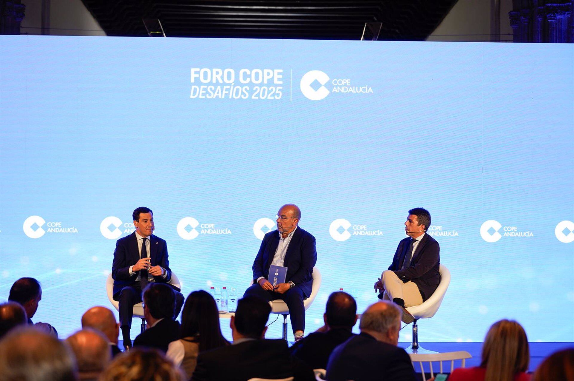 El presidente de la Junta de Andalucía, Juanma Moreno, ha criticado este jueves el "progresivo desmantelamiento de la calidad de los servicios públicos de ferrocarriles" en el país, mientras que el presidente de la Generalitat Valenciana, Carlos Mazón, ha cuestionado el diseño de la "España radial" como algo "improductivo". Son ideas que ambos presidentes autonómicos del PP han trasladado durante su participación en el Foro COPE Desafíos 2025 celebrado en Granada, moderado por el periodista Ángel Expósito y en el que se han abordado distintas cuestiones de actualidad, entre ellas, la de las incidencias en trayectos de tren que se vienen dando en las últimas fechas en diversos puntos de España. Al respecto, Juanma Moreno ha sostenido que se está dando "un problema de falta de planificación brutal en la conectividad", una cuestión que puede condicionar el "crecimiento económico" de un país, según ha advertido antes de denunciar que dos grandes capitales como Sevilla y Valencia, y dos grandes comunidades autónomas como la valenciana y la andaluza están "pésimamente conectadas", hasta el punto de que por ferrocarril "prácticamente no existe ningún tipo de conexión" directa, y desde Andalucía hay que "dar una vuelta a España para llegar a la Comunidad Valenciana", según ha puesto de relieve. Moreno ha lamentado que "ayer (este miércoles) volvió a haber un nuevo problema en la estación de Atocha" de Madrid, desde "donde una vez más llegaron trenes a Andalucía con tres horas de retraso", y al hilo ha advertido de que se está produciendo "un progresivo desmantelamiento de la calidad de los servicios públicos de ferrocarriles". "Alguno dice que tiene que ver con algún caso que se está investigando, yo no sé lo que se ha hecho, pero lo que sí sé es que hay una caída en la calidad", ha continuado comentando el presidente andaluz, que ha agregado que él personalmente, cuando "antes cogía un AVE, sabía exactamente a qué hora podía llegar" y, "es más, programaba mi agenda en función del AVE", ha abundado Moreno, que ha lamentado que, en cambio, últimamente, él que viaja "con frecuencia a Madrid", ya ha experimentado retrasos de "tres, cuatro, cinco horas" en sus desplazamientos en el tren de alta velocidad, e incluso, según ha citado como ejemplo, no llegó a tiempo a una inauguración de la Feria Internacional de Turismo (Fitur) que anualmente se celebra en la capital de España. El presidente andaluz ha aseverado que "un país occidental, fuerte, moderno, un país competitivo, no puede permitirse este tipo de desastres en términos de coordinación, planificación y de impulso de ejes que son estratégicos, como son la comunicación", y ha apostillado que ahí "hace también aguas el Gobierno" central. LA ESPAÑA "RADIAL" Por su parte, Carlos Mazón ha señalado que "se ha instalado en España" la idea de que "las conexiones más importantes, las más vanguardistas, y el AVE ha sido un ejemplo", tienen que ver con "la España radial", y ha subrayado que esa es "una ventaja competitiva que tiene Madrid". Dicho esto, se ha referido a los "corredores de prosperidad, de turismo, de innovación, de apertura, de exportación" que vinculan a puertos como el de Algeciras (Cádiz) o el de Valencia, y al respecto se ha preguntado "cómo es posible que el Corredor Mediterráneo, siendo la infraestructura más rentable que va a tener España probablemente en siglos, tenga estos retrasos" en su ejecución "porque no se priorizan" las actuaciones a llevar a cabo. "Han empezado por la parte catalana y resulta que todo el tramo catalán ya está hecho", pero qué pasa con la parte baja del Corredor Mediterráneo, ha continuado comentando el presidente valenciano, quien al hilo ha considerado que "esa concepción de España radial a la hora de hacer las infraestructuras", más allá de que sea justa o injusta, "es improductiva". En esa línea, Mazón ha reivindicado el "eje mediterráneo" como "un eje de prosperidad como pocos en Europa", y se ha preguntado que "cómo es posible que el Corredor Mediterráneo esté como esté", o "cómo es posible que los diseños de AVE en malla hayan sido siempre radiales". Frente a ello, ha apuntado que él cree "en esa España de muchos polos, que todos compiten", algo que ha valorado porque "al final de lo que se trata es de que cada vez España tenga territorios más competitivos". PRODUCCIÓN DE ENERGÍAS RENOVABLES Por otro lado, Juanma Moreno ha aprovechado la cuestión de la conectividad para referirse a las energías renovables, destacando que "Andalucía es la segunda comunidad en producción" de las mismas, y en ese punto ha explicado que "esta mañana, una empresa que quiere hacer una ampliación en una comarca de Sevilla", le comentaba que "no puede hacer la ampliación de su empresa porque no puede conectar la planta fotovoltaica que tiene con la propia producción y ampliación" de la compañía, porque "Red Eléctrica invierte en Andalucía un 40% menos de la media que nos corresponde". En ese punto, Moreno se ha preguntado "qué país vamos a hacer si no apostamos por las oportunidades que tenemos, si el Gobierno no está dedicado a lo importante, que es eso, a producir, mejorar y generar bienestar". "Si estamos enredados en el "procés" --independentista catalán--, en darle satisfacción a las ansias independentistas, si estamos en la supervivencia, evidentemente este país no podrá avanzar", ha sentenciado el presidente de la Junta.