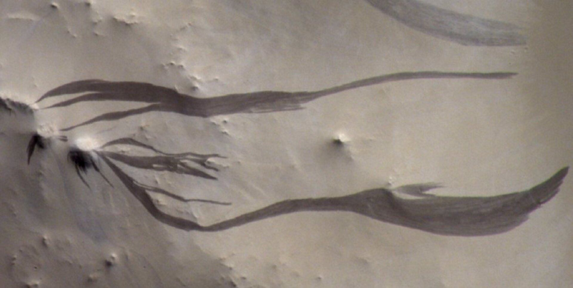 Los científicos observaron por primera vez las extrañas rayas en imágenes obtenidas por la misión Viking de la NASA en la década de 1970. Estas características fibrosas suelen ser de un tono más oscuro que el terreno circundante y se extienden cientos de metros por terreno inclinado.