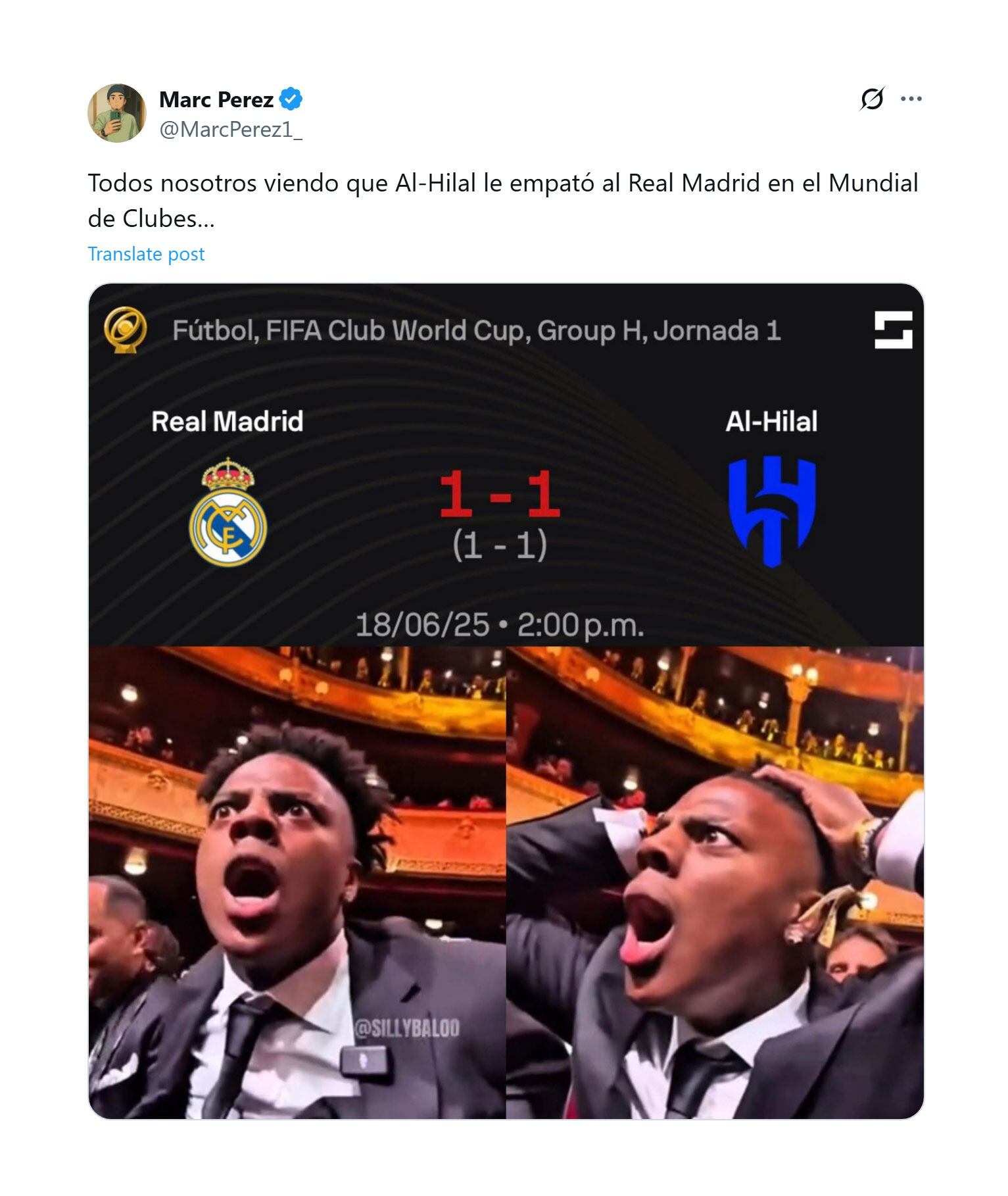 El impensado resultado, más allá de que Al Hilal es uno de los elencos más poderosos de Asia y, especiamente, de Arabia Saudita, una plaza que logró otra visibilidad a partir de los desembarcos de Cristiano Ronaldo y Neymar, generó una catarata de memes en las redes sociales. El buen partido planteado por los dirigidos por el ex DT del Inter, el poderío del Madrid que quedó minimizado y Bono y sus atajadas clave, resultaron los tópicos que más reacciones generaron.