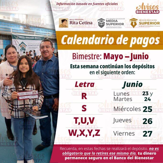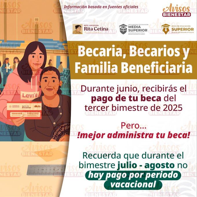 Hoy, miércoles 25 de junio, la Beca Universal de Educación Básica Rita Cetina Gutiérrez continúa su fase de pagos correspondientes al bimestre mayo-junio de 2025, beneficiando a miles de familias con estudiantes de secundaria inscritos en escuelas públicas del país.
