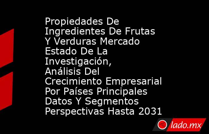 Estudio de informe de mercado global de Ingredientes de frutas y verduras: análisis competitivo más reciente con diferentes regiones, últimas tendencias, crecimiento empresarial, restricciones de desarrollo y nueva tecnología hasta 2031