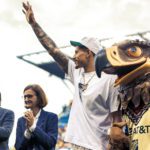 San José.— El basquetbolista Juan Toscano Anderson, primer mexicano en ganar un titulo de la NBA, se dejo consentir y estuvo presente en el partido del Club América contra el León.