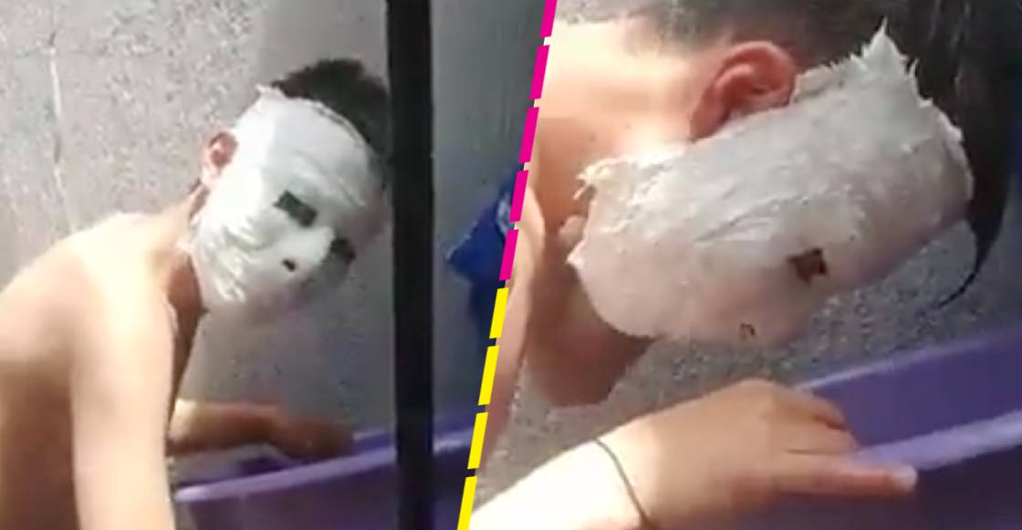 Luego de la cuchara, probó echándose agua caliente en la cara para ver si este método era el bueno y el que desprendería el yeso de una vez. Sin embargo, como todo lo que hizo antes, no funcionó. “Si cierro los ojos se me va zafando”, mencionó el chico, pero siendo muy honestos, no se veía que esa máscara se despegara. A continuación les dejamos el video para que chequen la situación tan estresante que vivió.