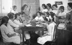 1925: Alumnas de la academia de taquigrafía recibiendo clases