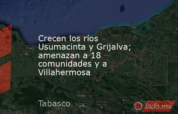 - Por el crecimiento del río Usumacinta, 18 comunidades de Jonuta están anegadas y en prevención del crecimiento del río Grijalva, la empresa que moderniza el malecón de Villahermosa, construido por el gobernador Carlos Madrazo Becerra hace 50 años, ha levantado muros con costales de arena.