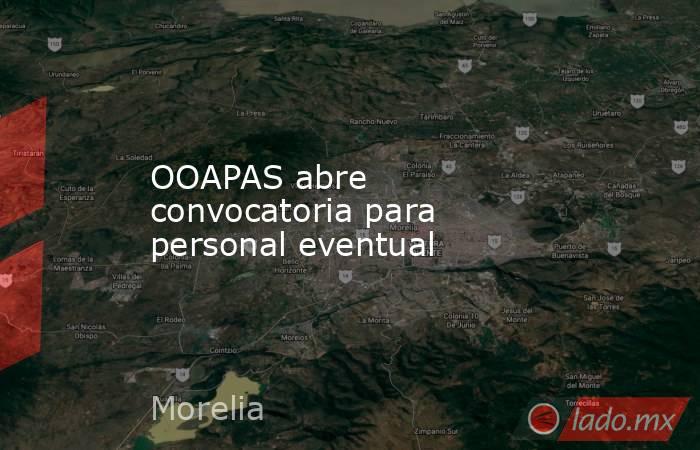 -Con el fin de seguir brindando el servicio al 100 por ciento a todo el municipio, el Organismo Operador de Agua Potable, Alcantarillado y Saneamiento de Morelia (OOAPAS) abrió la convocatoria para cubrir 70 plazas eventuales de forma inmediata y con duración hasta por 30 días.