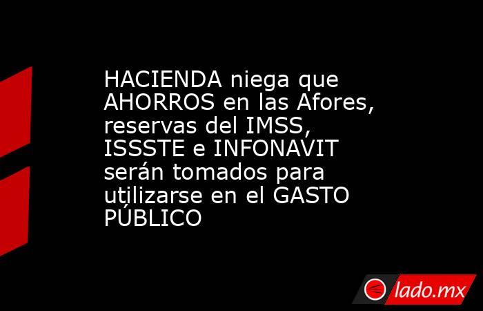 La Secretaría de Hacienda y Crédito Público (SHCP) negó que los ahorros en las Afores, reservas del Instituto Mexicano del Seguro Social (IMSS), ISSSTE e Infonavit serán tomados para utilizarse en el gasto público.