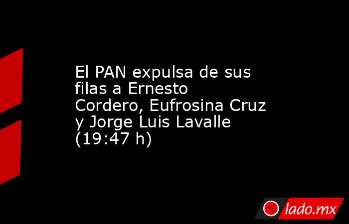 El PAN expulsa de sus filas a Ernesto Cordero, Eufrosina Cruz y Jorge Luis Lavalle (19:47 h). Noticias en tiempo real 30 de Junio, 2018 19:51
