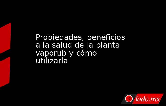 Una de las principales características del vaporub es que puede llegar a medir un metro de altura, tiene una flor con cuatro lóbulos en el labio superior y uno en el inferior; además tiene epidermis de raíz, tallo y hojas uniestratificadas. Las hojas son de color verde, carnosas y aterciopeladas con una fuerte fragancia a mentol.