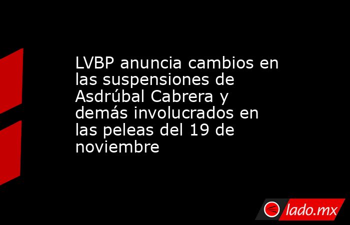 LVBP anuncia cambios en las suspensiones de Asdrúbal Cabrera y demás involucrados en las peleas del 19 de noviembre. Noticias en tiempo real 03 de Diciembre, 2022 19:23