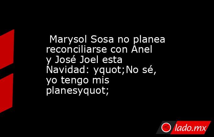 Marysol Sosa no planea reconciliarse con Anel y José Joel esta Navidad: yquot;No sé, yo tengo mis planesyquot;. Noticias en tiempo real 11 de Diciembre, 2022 13:20