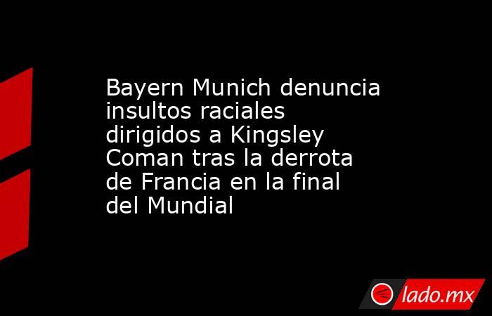 (CNN) -- Bayern Munich denunció insultos raciales dirigidos hacia el jugador francés Kingsley Coman tras la derrota de Francia en la final del Mundial el domingo.