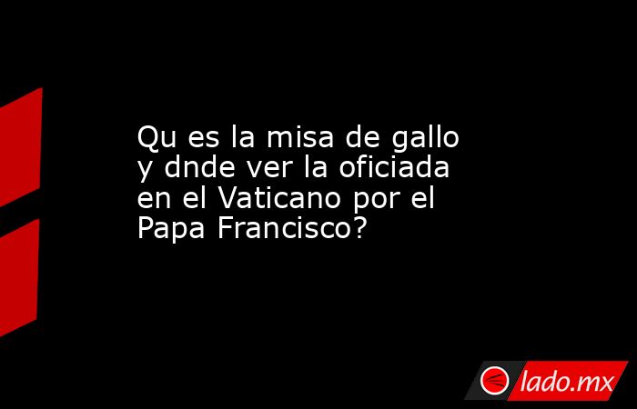 Qu es la misa de gallo?La misa de gallo es, como su nombre lo indica, una celebracin religiosa llevada a cabo al interior de los templos catlicos o cristianos que se oficia en noche buena, poco antes de la medianoche, como antesala de la navidad.