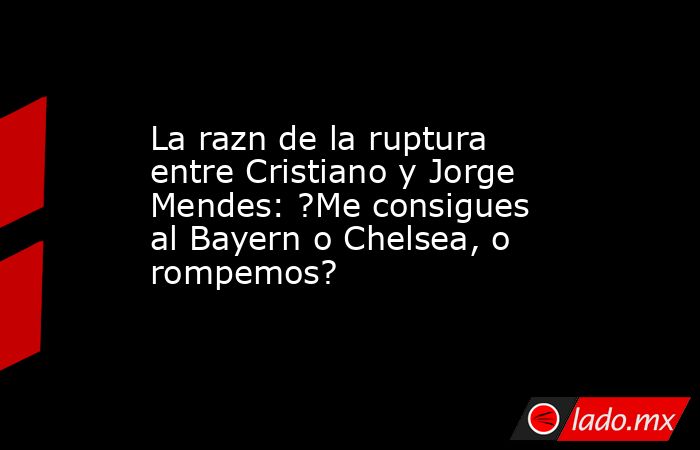 ?O me consigues al Chelsea o Bayern Mnich, o rompemos?, fueron las condiciones que Cristiano Ronaldo puso a Mendes.
