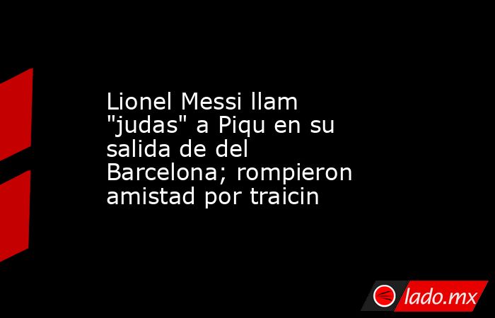 Lionel Messi llam "Judas" a Piqu al irse del BarcelonaEn medio de polmica y de manera sorpresiva, Lionel Messi se fue del Barcelona tras ms de dos dcadas en el club, pero antes de marcharse, se habra enterado de las palabras de Gerard Piqu, segn revel el mismoIrigoyen.