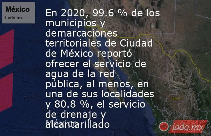 The post En 2020, 99.6 % de los municipios y demarcaciones territoriales de Ciudad de México reportó ofrecer el servicio de agua de la red pública, al menos, en una de sus localidades y 80.8 %, el servicio de drenaje y alcantarillado appeared first on .