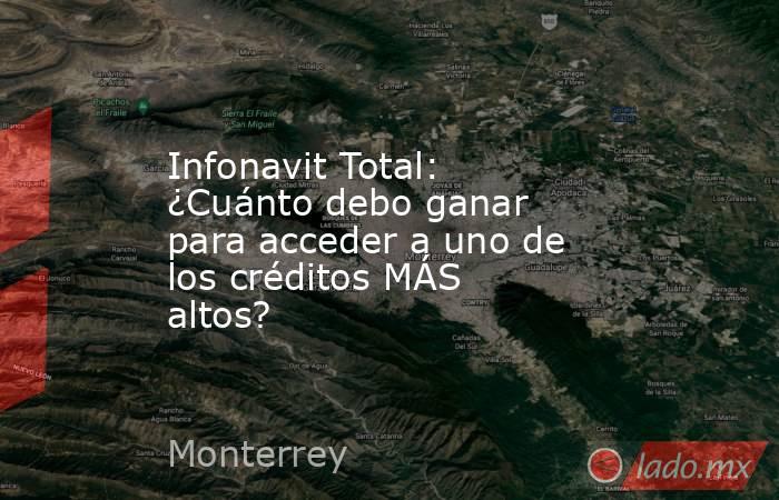 ¿Qué es el crédito InfonavitTotal y cuánto debo ganar para acceder a él?Infonavit ofrece tres grandes grupos de créditos: para compraEn el caso de los que están destinados a la adquisición de inmuebles, existen seis tipos de créditos: Crédito Infonavit Apoyo Infonavit CofinavitCofonavit Ingresos adicionales Tu 2do crédito Infonavit InfonavitTotal Esta última opción es la que se ofrece la posibilidad de recibir hasta dos millones y medio de pesos.
