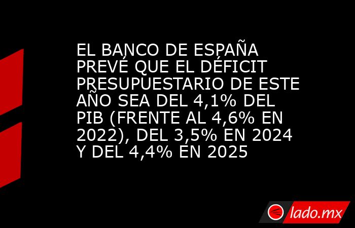 EL BANCO DE ESPAÑA PREVÉ QUE EL DÉFICIT PRESUPUESTARIO DE ESTE AÑO SEA DEL 4,1% DEL PIB (FRENTE AL 4,6% EN 2022), DEL 3,5% EN 2024 Y DEL 4,4% EN 2025. Noticias en tiempo real 22 de Marzo, 2023 07:10