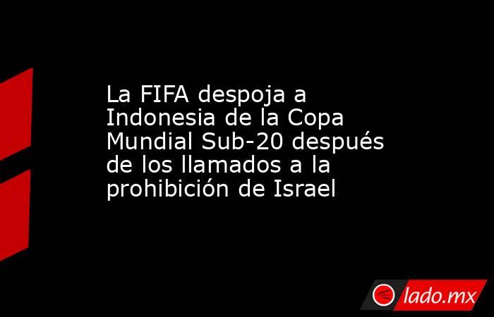 (CNN) -- El organismo rector del fútbol mundial, la FIFA, despojó a Indonesia de su derecho a albergar la Copa Mundial Masculina Sub-20 a finales de este año después de que un funcionario indonesio se opusiera a la participación de Israel.