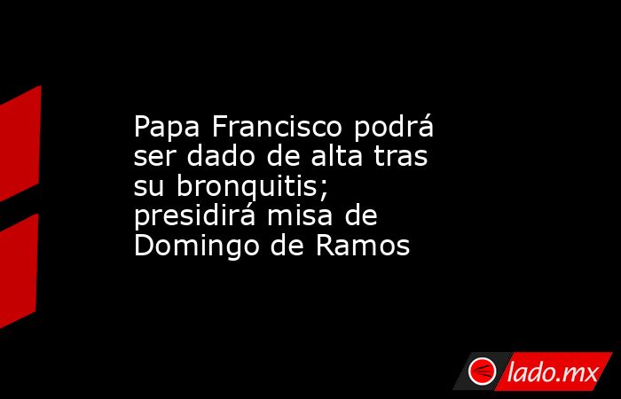 El papa Francisco espera recibir el alta médica después de su reciente hospitalización por una bronquitis, en tanto, asistirá a la misa del Domingo de Ramos en la plaza de San Pedro, confirmó hoy el vocero de la Santa Sede, Matteo brunniFrancisco, de 86 años, saldrá previsiblemente mañana del hospital Gemelli de Roma en el que se encuentra ingresado desde el miércoles por una bronquitis y, de este modo, podrá presidir la misa que oficialmente abre los ritos de la Semana Santa.