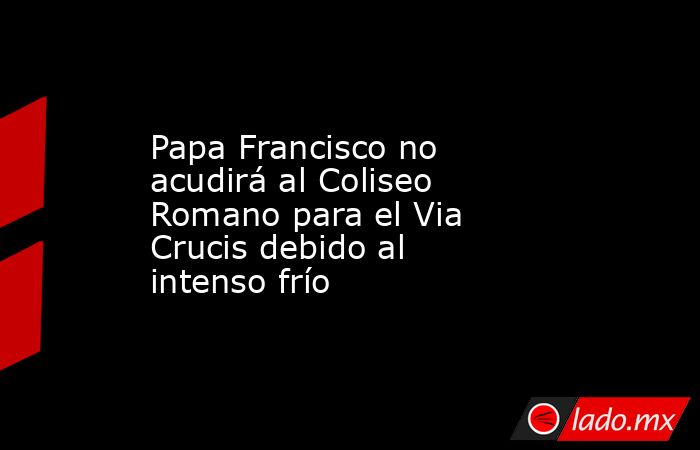 El papa Francisco no irá al Coliseo de Roma para presenciar el tradicional Via Crucis del Viernes Santo y en su lugar lo seguirá desde su residencia en el Vaticano por el "intenso frío".