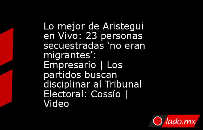 Lo mejor de Aristegui en Vivo: 23 personas secuestradas ‘no eran migrantes’: Empresario | Los partidos buscan disciplinar al Tribunal Electoral: Cossío | Video Editorial Aristegui Noticias