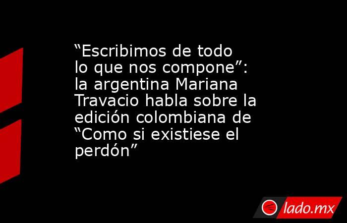 “Como si existiese el perdón” es la primera novela publicada de la escritora argentina. Vio la luz originalmente en 2016, cuando la publicó una editorial bonaerense; posteriormente se publicó también en España y fue reeditada en Argentina, una vez más, por el sello Tusquets, en 2021; para el cierre de 2022, el sello colombiano Rey Naranjo Editores la reeditó, a propósito de la presencia de la autora en la edición 2023 del Hay Festival, en Cartagena de Indias.