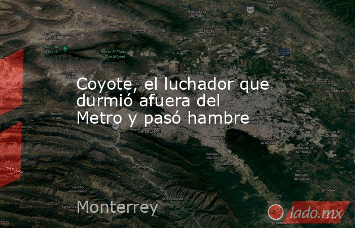 Así lo dijo“Varios días tuve quedarme a dormir fuera del metro, no tenía dinero para comer, pero había más ganas y deseos de salir adelante, y ahora aquí está el fruto de todos esos esfuerzos”CoyoteLuchadorLa Cifra13Años tiene el Coyote como luchador profesional, inició su carrera como Antaris en Monterrey.
