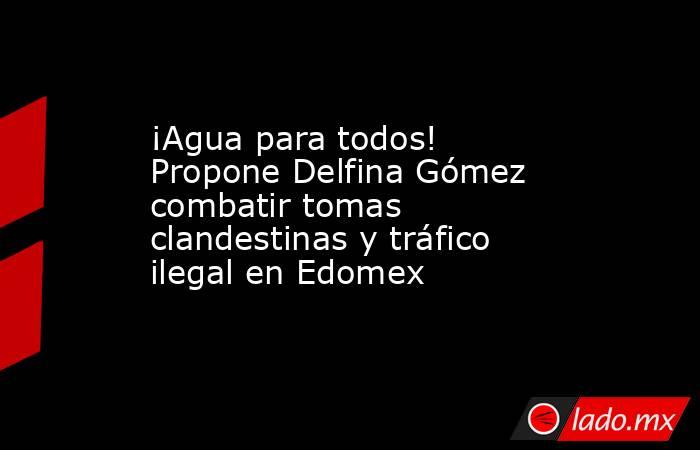 La maestra Delfina Gómez, candidata a gobernadora del Estado de México por MORENA, PT y PVEM propuso combatir las tomas clandestinas y el tráfico ilegal del agua en el Estado de México, toda vez que el abasto de agua se ha convertido en una importante problemática para los habitantes de la entidad.