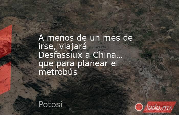 The post A menos de un mes de irse, viajará Desfassiux a China… que para planear el metrobús appeared first on La Orquesta.