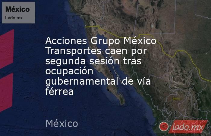 CIUDAD DE MÉXICO, 22 mayo (Reuters) - Las acciones de Grupo México Transportes caían el lunes por segunda jornada consecutiva después de que el Gobierno publicó un decreto oficial de ocupación de un tramo ferroviario operado por una de sus subsidiarias.