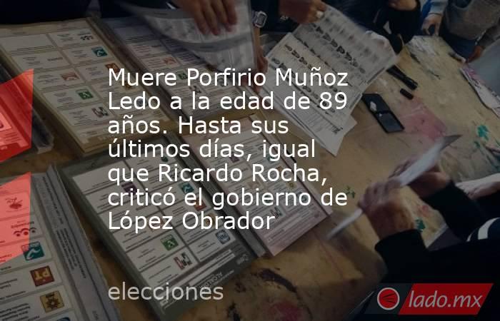 Muere Porfirio Muñoz Ledo a la edad de 89 años. Hasta sus últimos días, igual que Ricardo Rocha, criticó el gobierno de López Obrador Libertadbajopalabra.com
