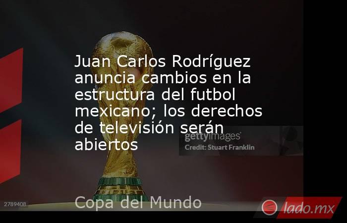 Juan Carlos Rodríguez, comisionado de la Federación Mexicana de Futbol, anunció los cambios de estructura que habrá en el futbol mexicano, dentro de los que destaca la formación de un grupo de expertos, quienes fungirán como asesores y la venta abierta de los derechos de transmisión del Tricolor al terminar la Copa del Mundo de 2026.