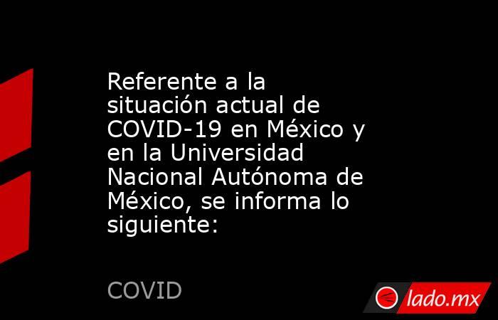 The post Referente a la situación actual de COVID-19 en México y en la Universidad Nacional Autónoma de México, se informa lo siguiente: appeared first on .