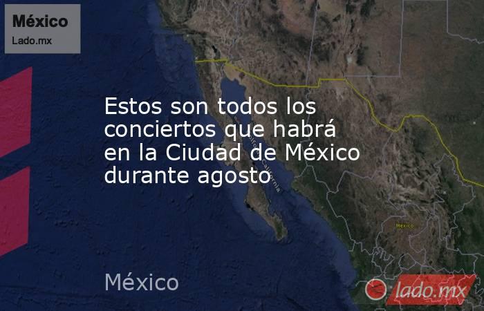 Este agosto no será la excepción y aquí te traemos todos los conciertos que habrá durante los 30 días del mes en los diferentes recintos de la Ciudad de México, seguro habrá alguno que llame tu atención y sea un buen pretexto para tomar una noche libre.