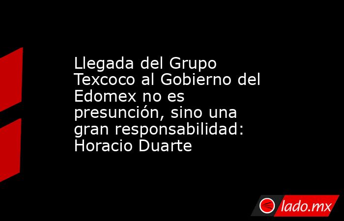 Agencia Cuestión de POLÉMICA Horacio Duarte Olivares, Coordinador del equipo de Transición de la Gobernadora Electa Delfina Gómez, declaró que la llegada del Grupo Texcoco para desmantelar al Grupo Atlacomulco en el Gobierno del Estado de México “no es un acto de presunción, sino de una gran responsabilidad” para responder a la confianza del electorado […]The post Llegada del Grupo Texcoco al Gobierno del Edomex no es presunción, sino una gran responsabilidad: Horacio Duarte appeared first on Cuestión de Polémica.