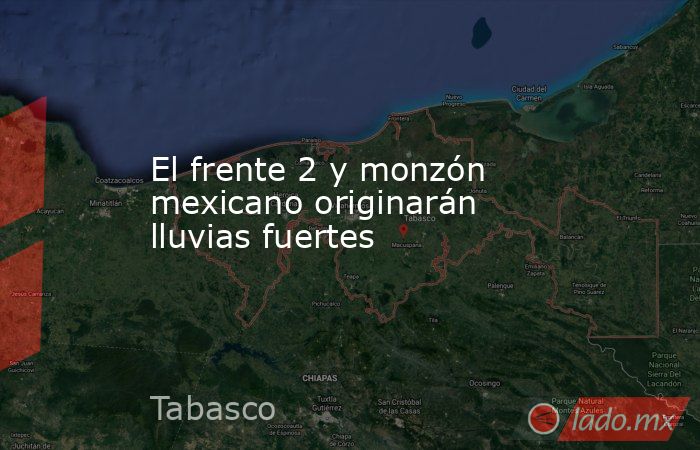 El monzón mexicano y el frente número 2 generarán lluvias fuertes en Chihuahua, Coahuila, Durango y Sinaloa; chubascos en Nuevo León y Sonora; lluvias aisladas en Baja California Sur; viento con rachas de 60 a 70 kilómetros por hora (km/h) y condiciones para la formación de torbellinos o tornados en Chihuahua y Coahuila.