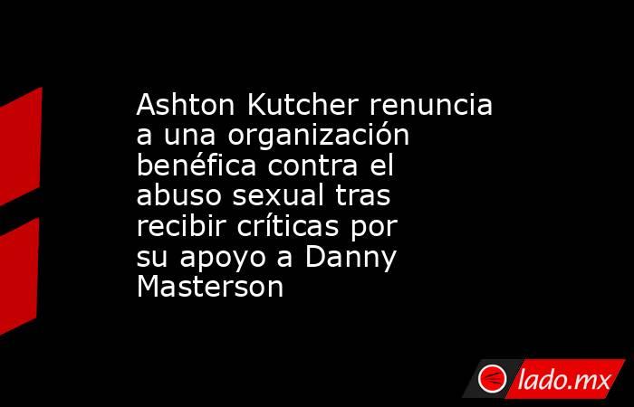 (CNN) -- Ashton Kutcher renunció a su cargo en Thorn, una organización sin ánimo de lucro contra el abuso sexual infantil que cofundó, después de recibir duras críticas la semana pasada por las cartas de apoyo que él y su esposa Mila Kunis escribieron en nombre de su excompañero de "That 70s Show" Danny Masterson antes de una audiencia de sentencia.