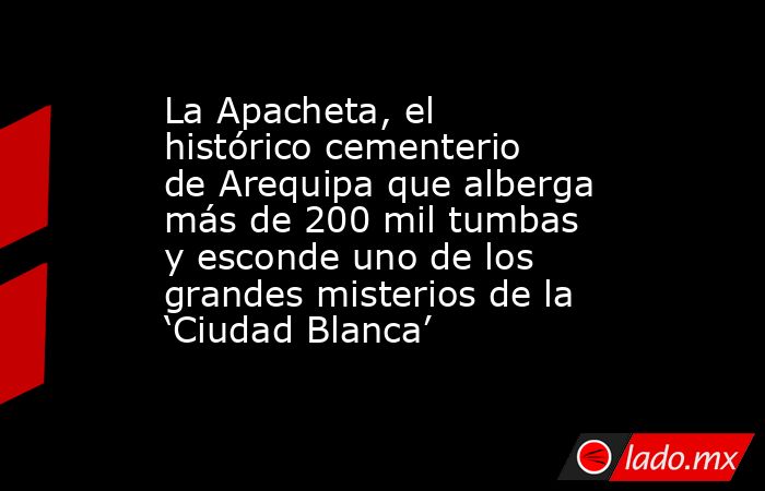 El cementerio general La Apacheta destaca como uno de los camposantos más icónicos de Arequipa. Reconocido como un importante elemento del patrimonio cultural, este lugar se levanta sobre 130 mil metros cuadrados y ofrece la oportunidad de difundir la riqueza cultural no solo entre los habitantes de Perú, sino también a nivel internacional.