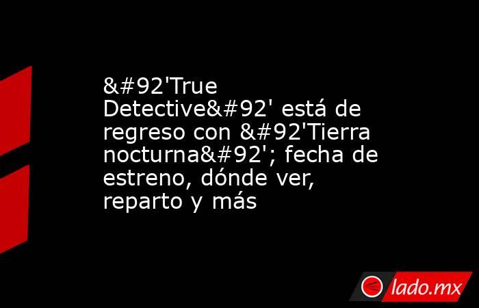 True Detective tierra nocturna: fecha de estreno y dónde ver'True Detective: Tierra nocturna' se estrenará el próximo domingo, 14 de enero, a las 19:00 horas (tiempo Ciudad de México) mediante HBO y HBO Max.