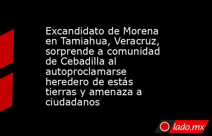 En un acto que ha dejado perpleja a la comunidad de Cebadilla en Tamiahua, Veracruz, el excandidato a la presidencia municipal por el partido Morena, José Luis Soto Loya, ha presentado una escritura, documento donde se autonombra heredero y dueño absoluto de esta ancestral comunidad, reconocida como tal durante más de 100 años.