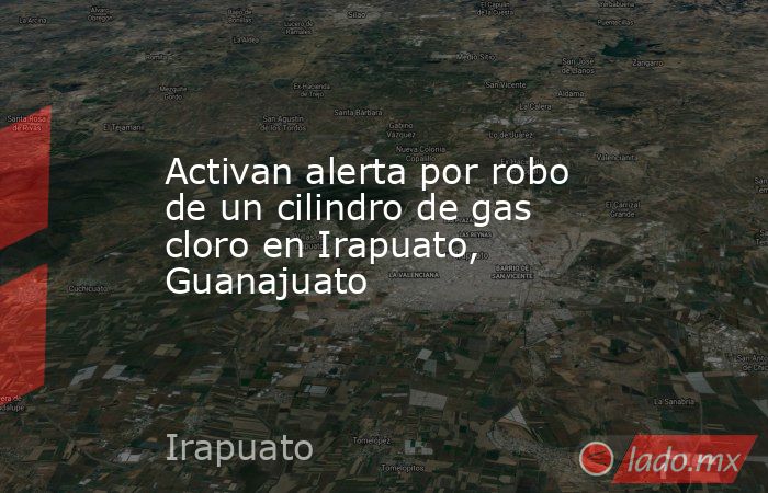 La Coordinación Nacional de Protección Civil alertó a la población sobre el robo de un cilindro con gas cloro en el municipio de Irapuato, Guanajuato, con capacidad de 68 kg por lo que activó la alerta de riesgo alta despido a que puede ser fatal si se inhala o absorbe en la piel.
