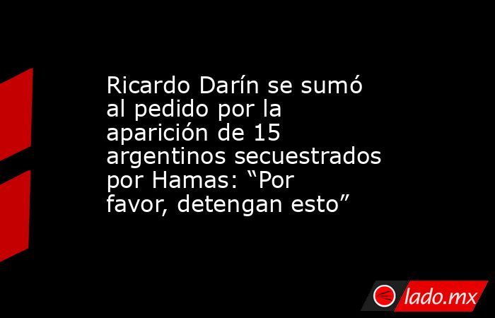 Ricardo Darín se sumó a una campaña que exige por el paradero de los 15 argentinos que se encuentran desaparecidos y que habrían sido tomados como rehenes por el movimiento radical islámico Hamas tras los ataques contra Israel.