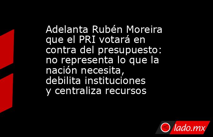 The post Adelanta Rubén Moreira que el PRI votará en contra del presupuesto: no representa lo que la nación necesita, debilita instituciones y centraliza recursos appeared first on .