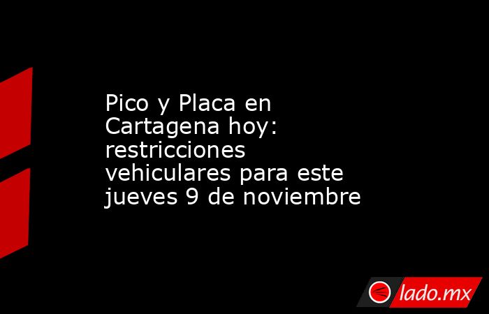 La Alcaldía de Cartagena informó sobre la aplicación del Pico y Placa para hoy 9 de noviembre en la ciudad colombiana. Enseguida te damos los detalles de este programa de restricción vehicular y evita multas.