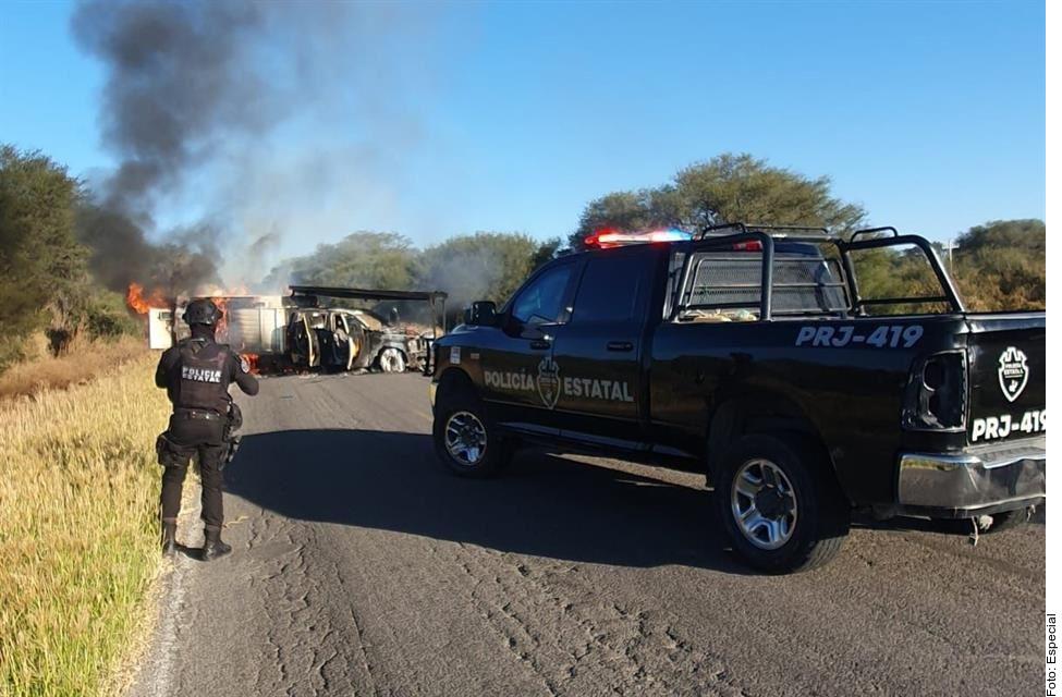 De acuerdo con informes de la Fiscalía de Jalisco, uno de los bloqueos fue en el kilómetro 30 de la carretera Jalostotitlán-Teocaltiche, en donde los agresores atravesaron una camioneta RAM en llamas, de blindaje artesanal, la cual fue asegurada por las autoridades.