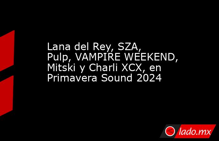 Barcelona, 21 nov (EFE).- Lana del Rey, SZA, Pulp, VAMPIRE WEEKEND, Mitski, Charli XCX, Justice, PJ Harvey y The National son algunas de las bandas que actuarán en la 22 edición del Primavera Sound Barcelona, que se celebrará del 29 de mayo al 2 de junio de 2024.
